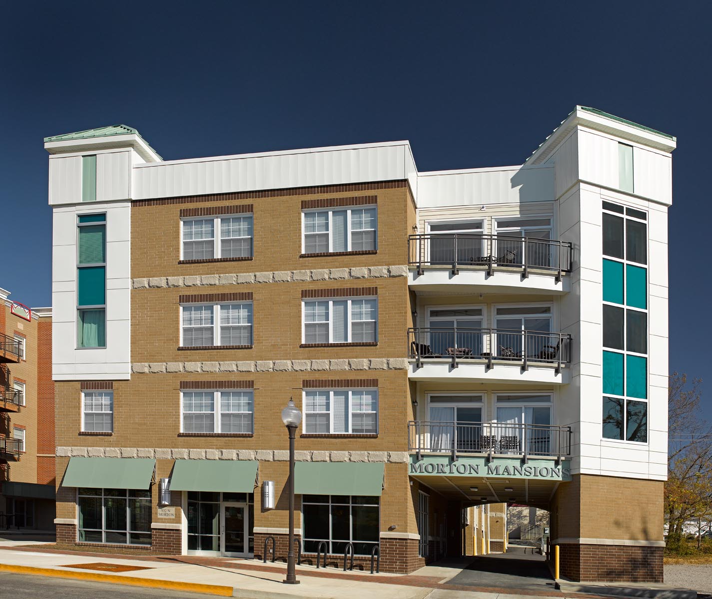 Morton Mansions is a four level, high end student housing development located in downtown Bloomington, IN. This 15 unit, 30 bed complex features one, two and four bedroom luxury units, sitting atop a 1,200 SF retail space and covered parking. Units feature wood flooring, open kitchens, contemporary lighting and bedrooms with private baths. Over-sized windows and